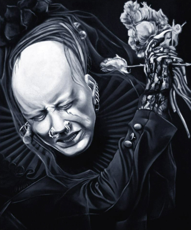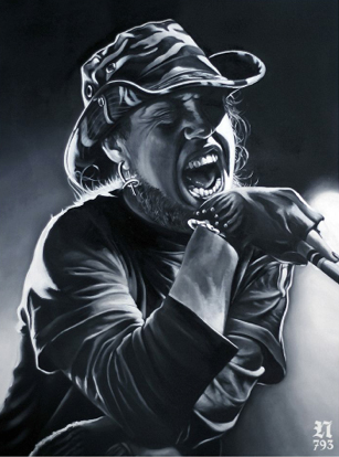 A legutóbbi portréja ha jól tudom Rob Zombie fotója alapján készült. Itt már eltért némileg az eredeti képtől, és megfigyelhető az is,hogy visszakúsztak a textúrával, a mocsokkal és enyészettel megerjesztett felületek. Talán ez is egy újabb fázis, hogy esetleg megjelennek a "színek" is a feketefehér festményeken, esetleg kiszorítják a monokróm képeket majd a későbbiekben? Ezt most még senki sem tudja, de remélhetőleg a következő kiállítás alkalmával lesz rá lehetőségünk hogy megtudjuk merre tart az alkotó.