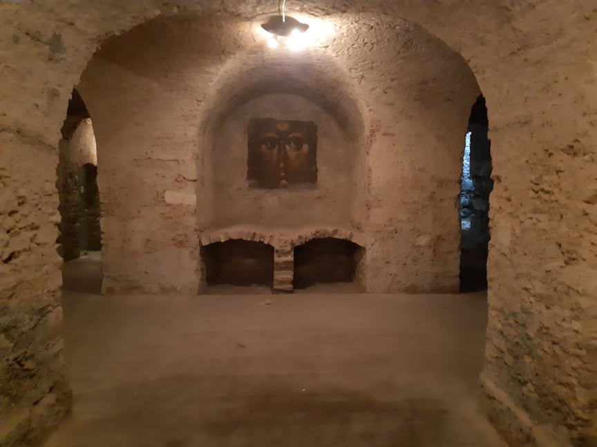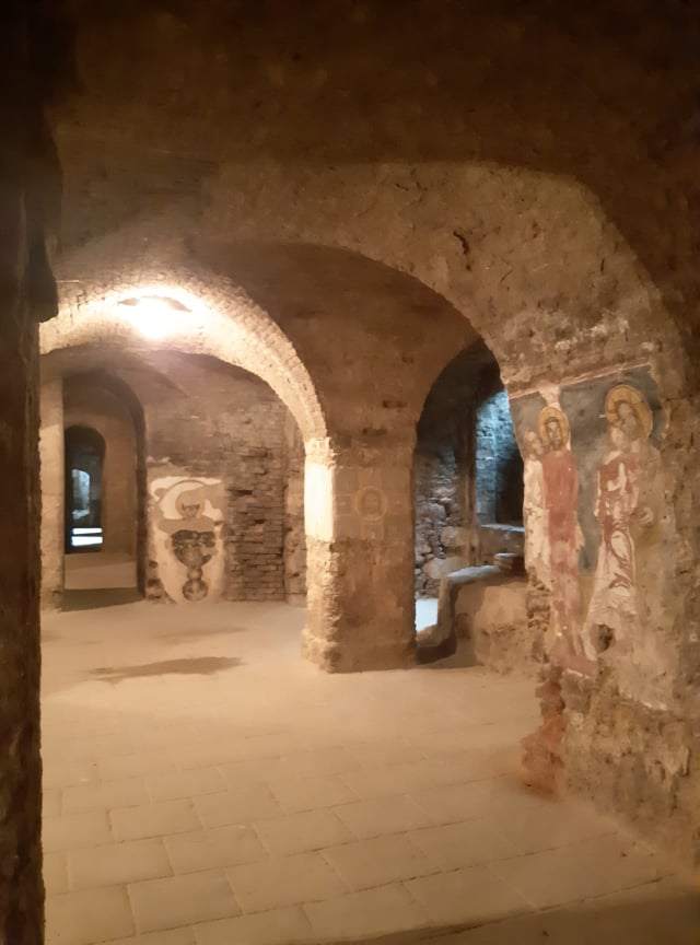 A XVIII. századi kolostor templomtere alatt végigfutó kripta eredetileg a Zichy-család temetkezőhelye volt. Óbuda egykori földesura, Zichy Miklós volt itt eltemetve, akinek a síremlékét a templom szentélyében állították fel. A trinitárius szerzetesrend feloszlatása után, 1784-ben a kolostorral együtt a kriptát is kiürítették, a síremléket pedig lebontották - egyes darabjai ma a múzeum gyűjteményében találhatóak. A kripta ma filmforgatások kedvelt helyszíne.