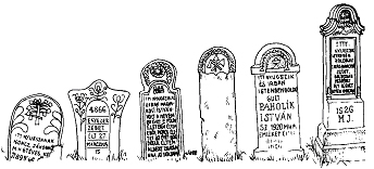 A sírkövek legegyszerűbb formái a lapos kövekből készített sírkőtáblák, a kő eredeti, szabálytalan alakját meghagyták, csak az íráshoz szükséges felületet simították le. A faragott, tábla alakú sírjelet már kő alapra állították, változatos díszítésűek és körvonalúak lehettek.